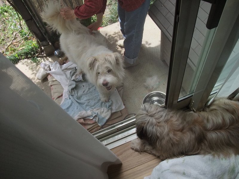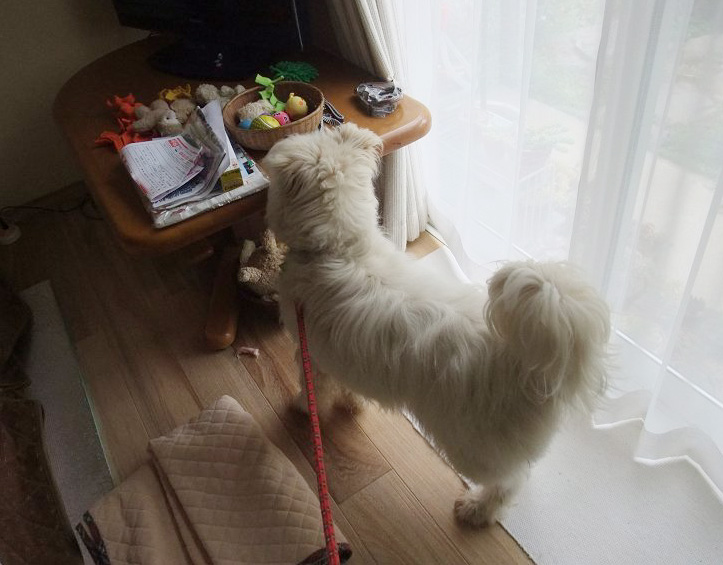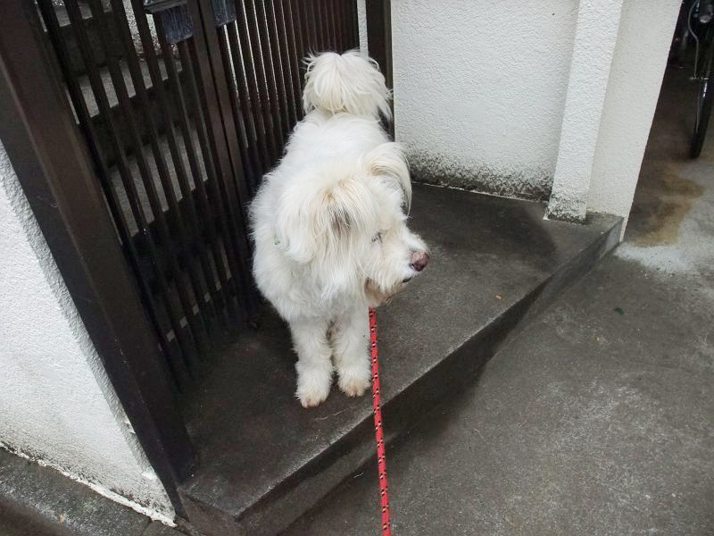 また、雨が降ってきて、お庭で済ませ、お留守番決定。