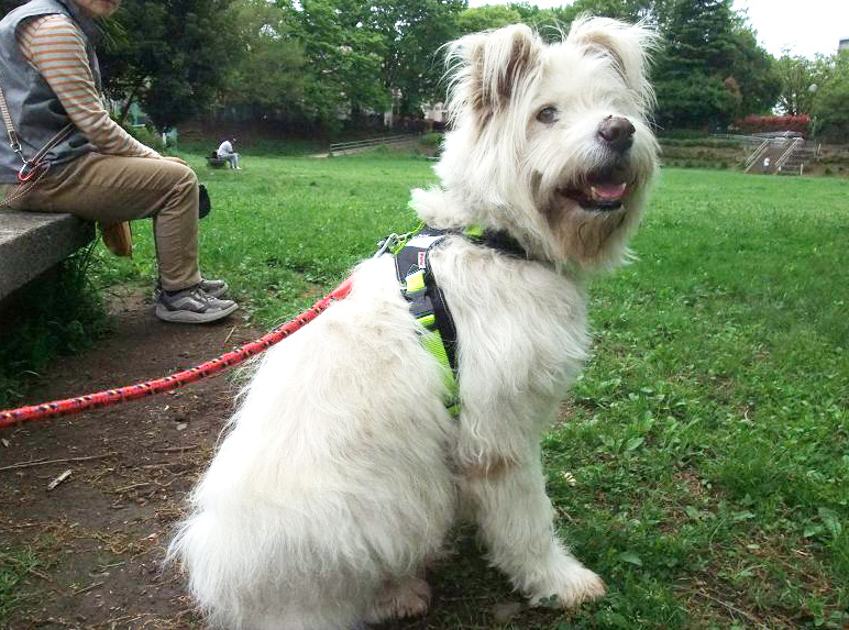気分がいい感じなので、いつもの広場で、「ハーネス」着けてみました。
