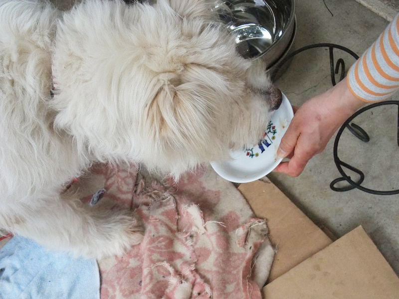起きてきたので、朝のご飯の残りをあげたら、食べてくれました。