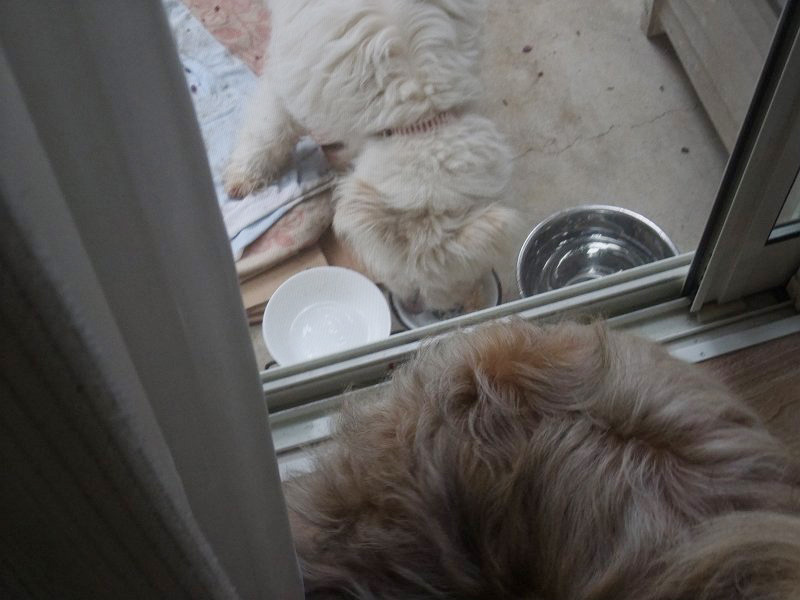 ラッキーは、コロちゃんが美味しい物をもらってないか、常に監視しています。