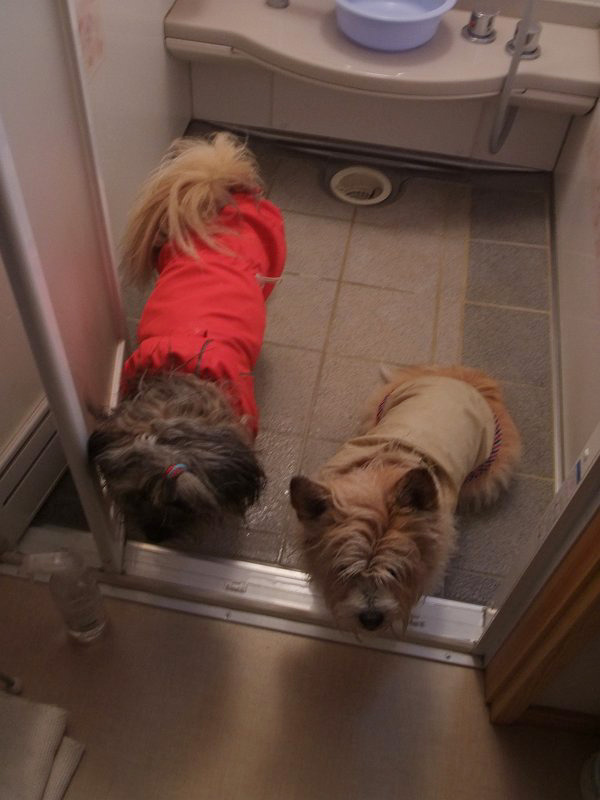 びしょ濡れのまま、朝ご飯。