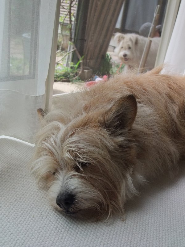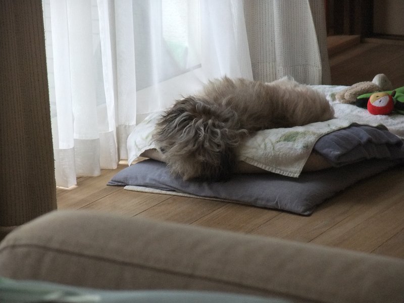 朝散歩にも行かず、熟睡。