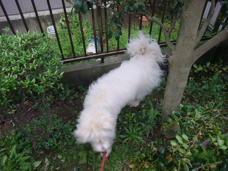 けさも、お庭で用を済ませました。