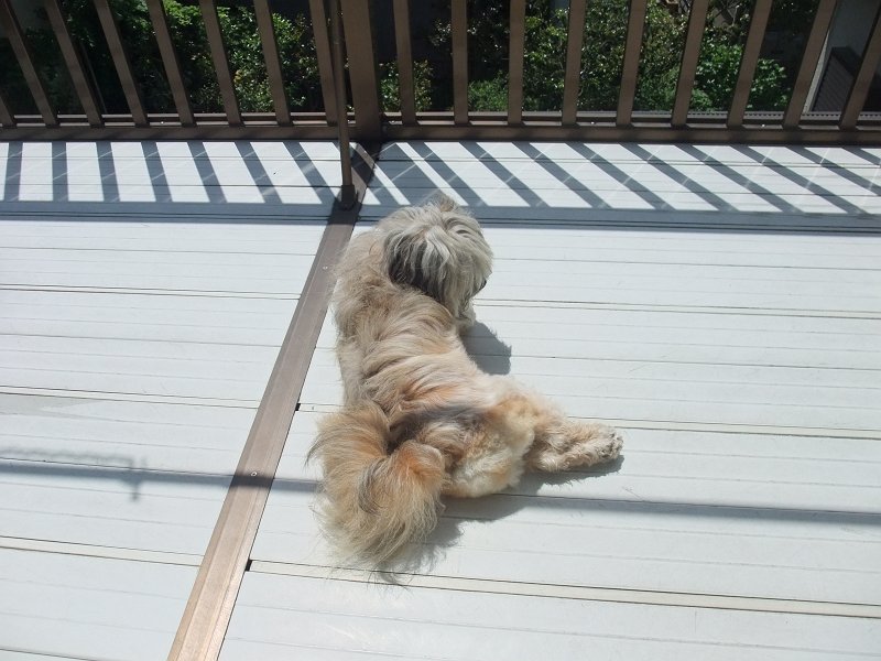 仕方ないので、ベランダで、日光浴。