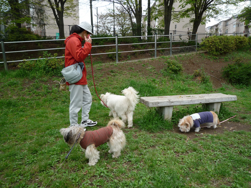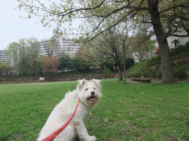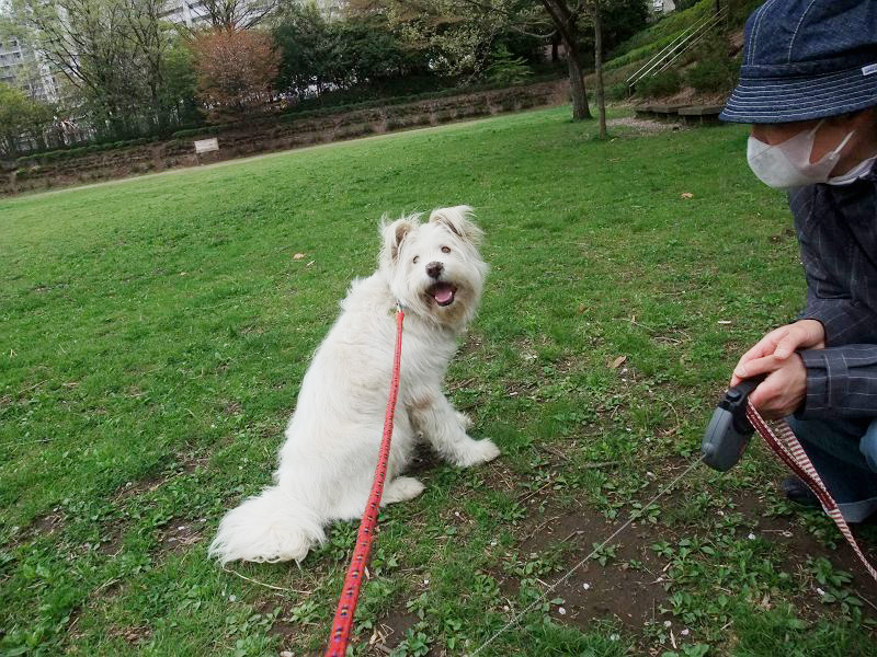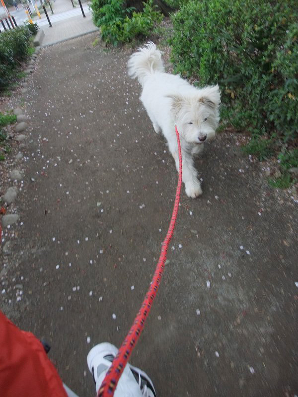 朝散歩、ラキピピといっしょなら、出かけられます。