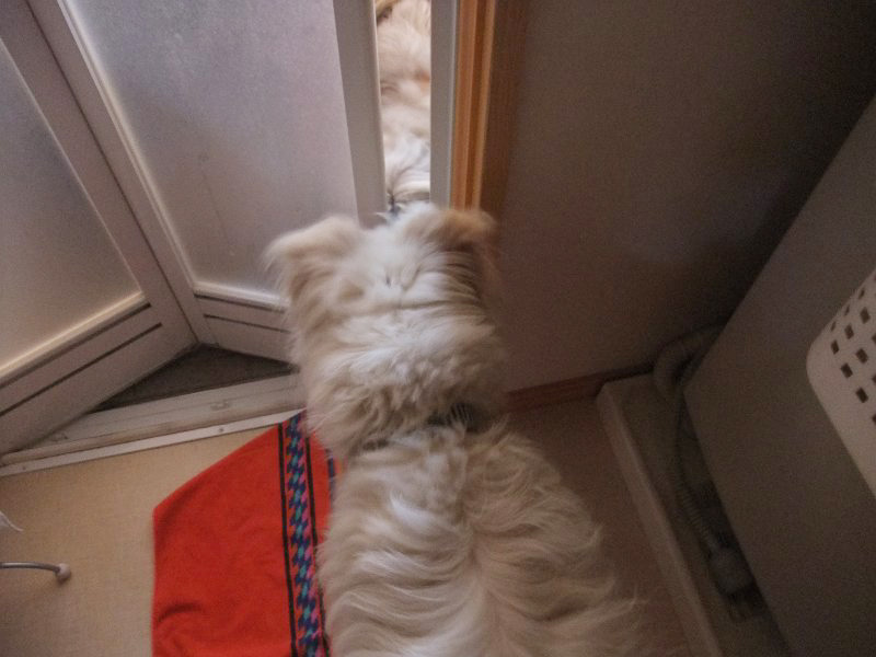 朝と同じように、ラキピピより早く戻れば、また入れてもらえると思ったのでしょうか。