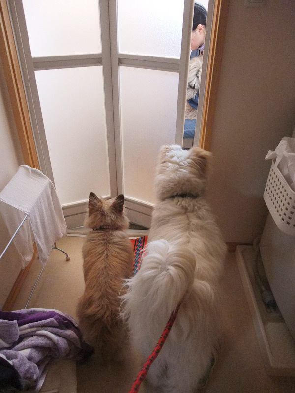 ラッキーといっしょに、仲良さげに、お風呂場のピッピをのぞいたり。