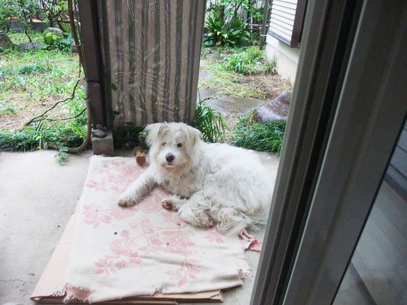 コロちゃんは、廊下(縁側?)で。