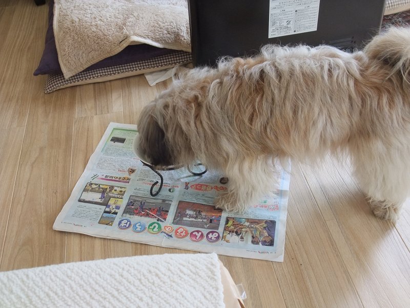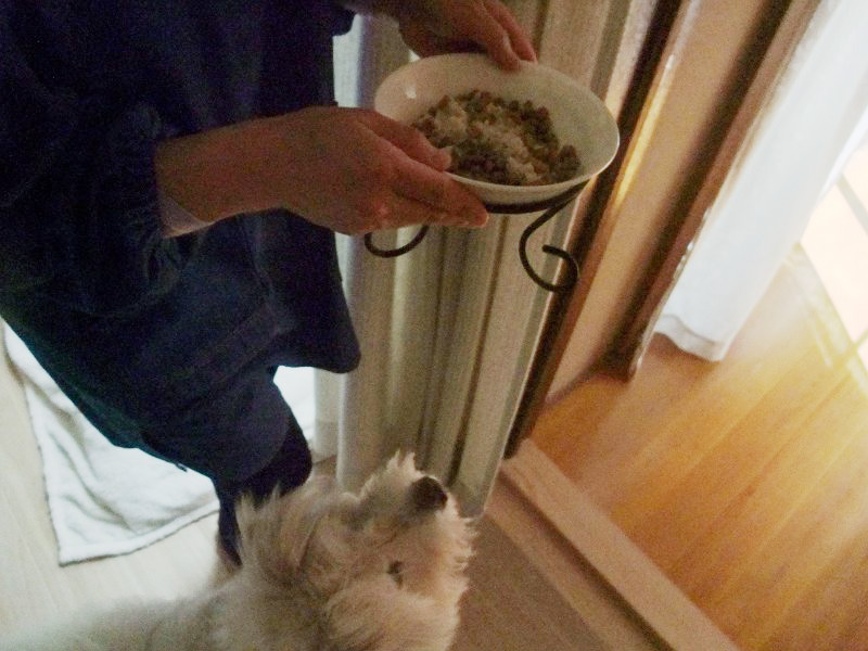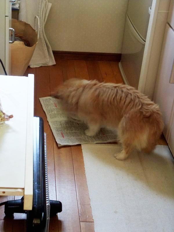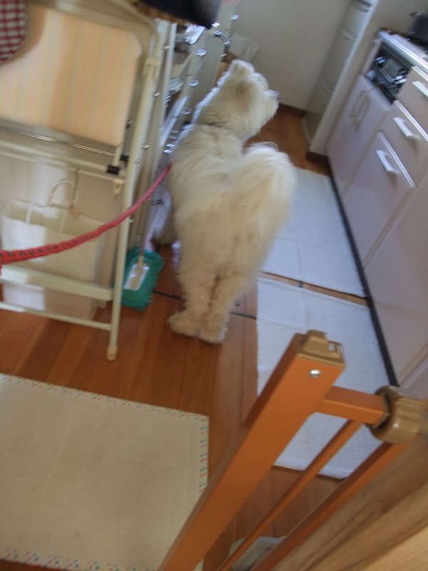 食べ物が絡むと、ラッキーが神経質になるので、ラッキーだけ、台所に隔離してます。
