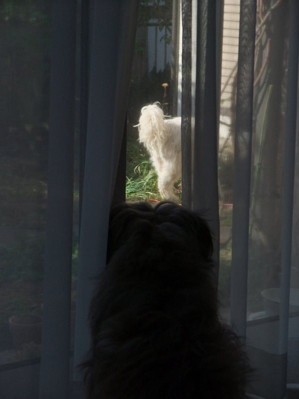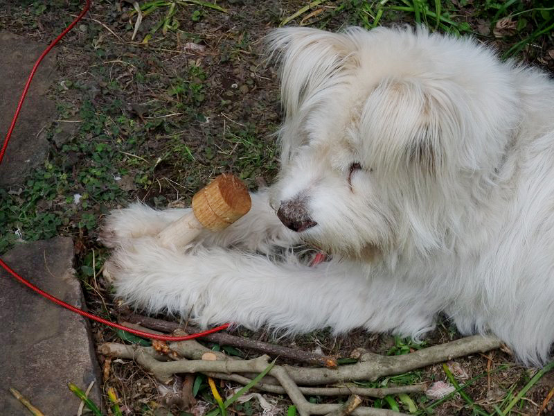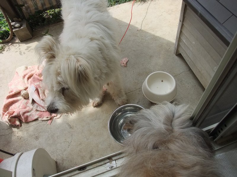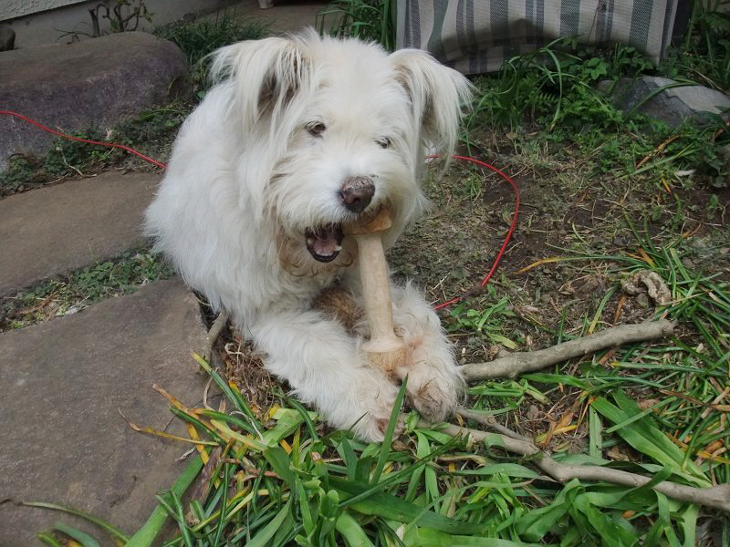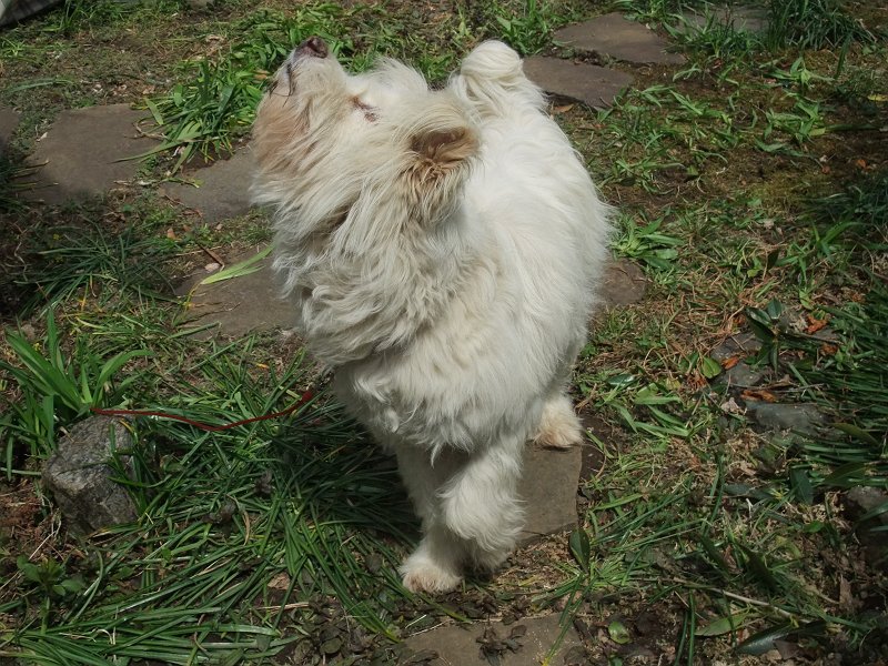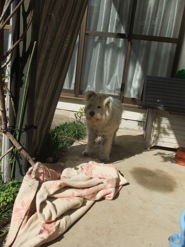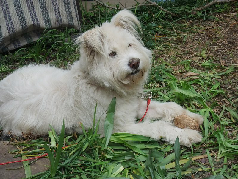 午前から庭仕事していると、コロちゃん、はしゃいだりして、気を惹こうとしている様子。