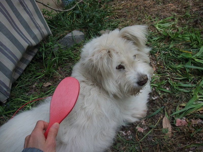 たまに、ブラッシングしてあげたり、庭をお散歩させてあげたり。