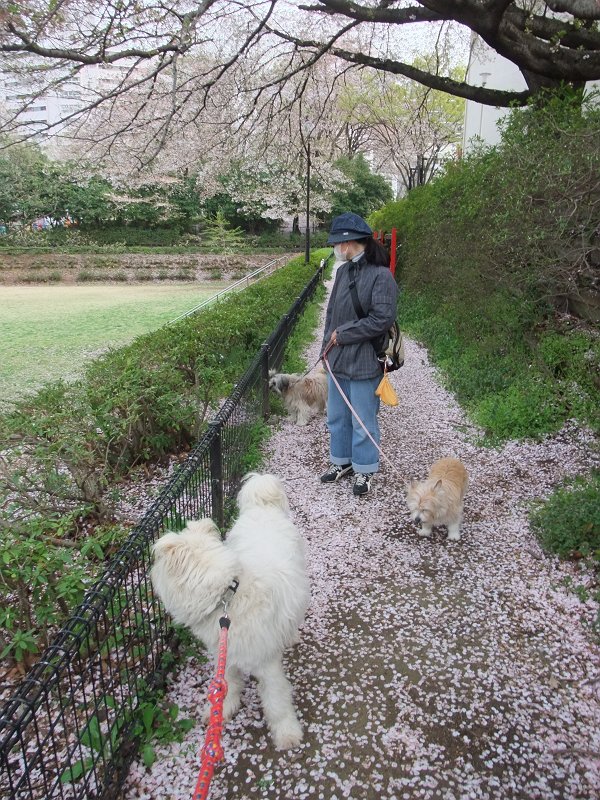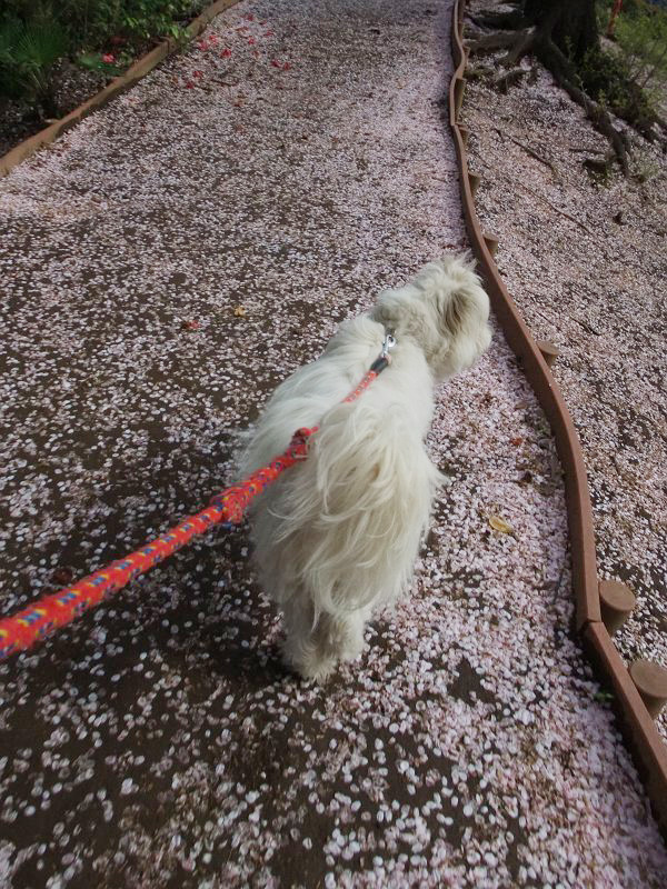 今日も桜の花びらのじゅうたん。