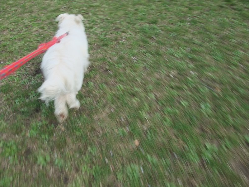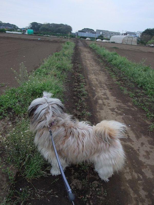 雨がやんだので、行ってみると、そろそろハウスから出てきたので、なだめなだめ、いっしょに夕散歩へ行くことができました。