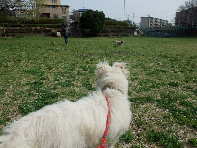 天気も良くなって、気分が良い感じだったので、なだめなだめ、すぐ近くの公園まで。