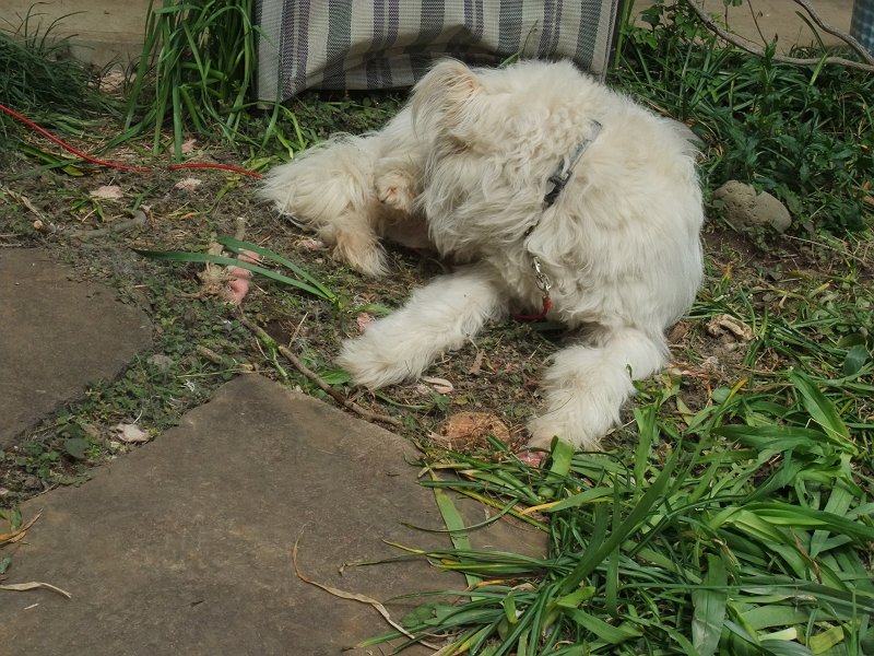 お庭でのんびりコロちゃん。