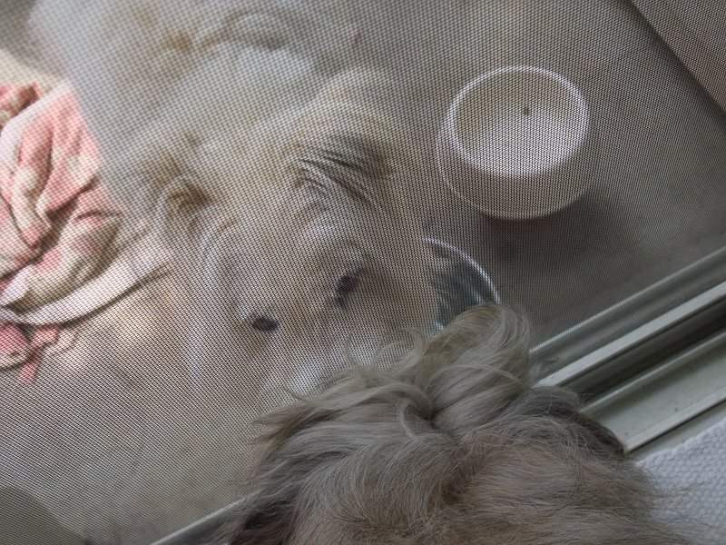 しまいに、ハウスの中に入り込んで、こちらに向かって、わざと、眠そうなお目目をして見せました。