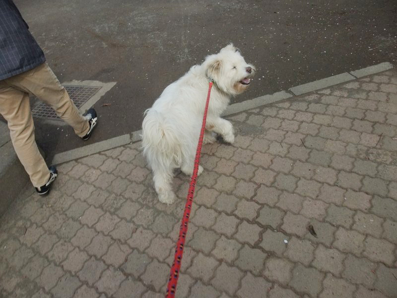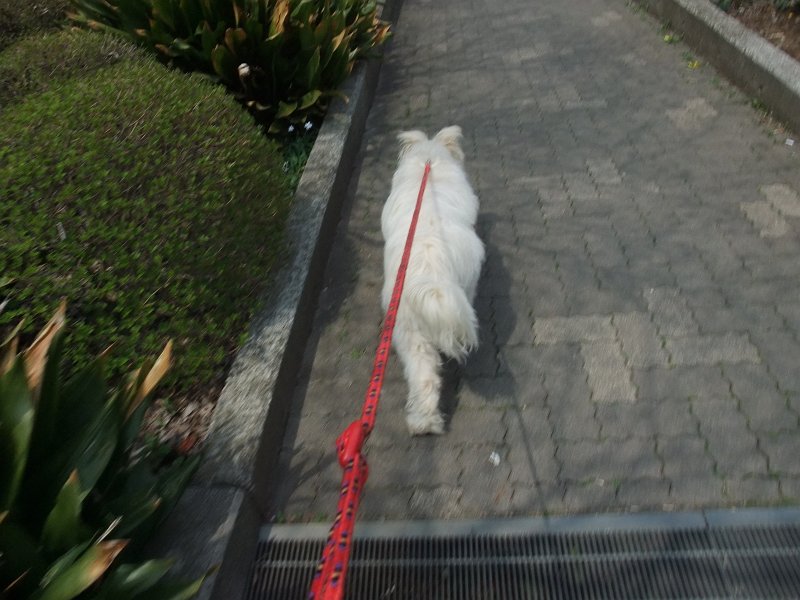 何度も「待て」をして足取りをリードがたるむくらいにゆっくり歩いてもらいました。