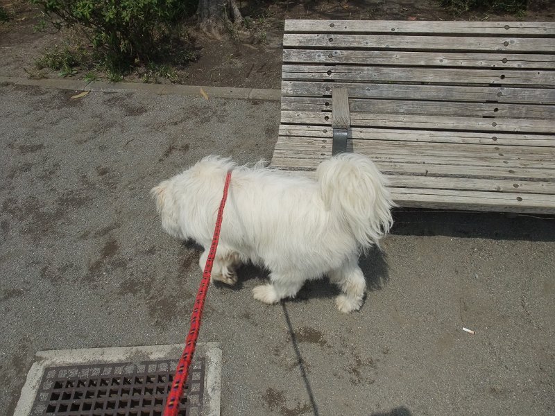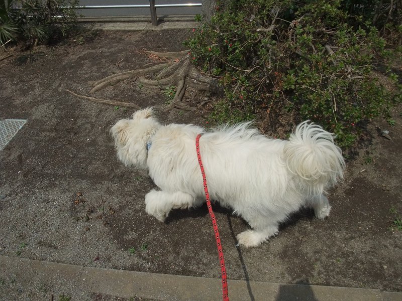 でも、公園にさしかかるとき、入るときには、嬉しくなってか、道路から早く逃げたくてか、ぐいぐい引っ張って入っていきます。