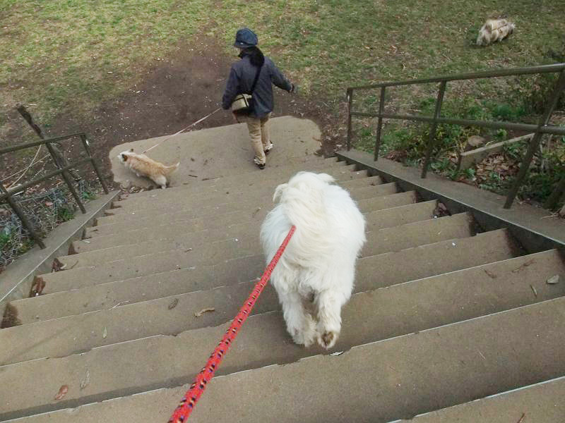 大好きな広場への階段は、「ゆっくりね~」と言えば、わかってくれます。