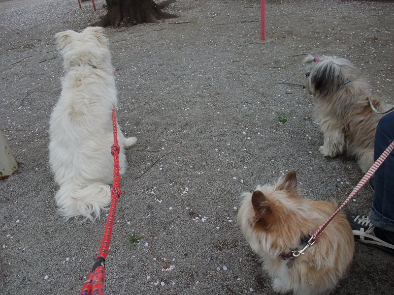 ラッキーとピッピの方が先輩だという意識も今後つけておいた方がよいので、後ろからゆっくり歩きペースを合わせる訓練もしています。