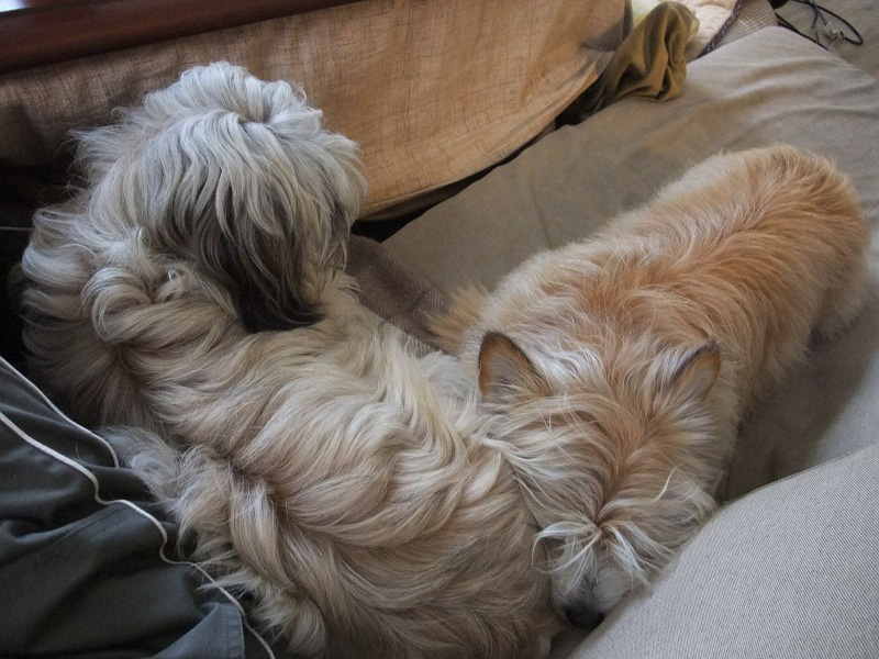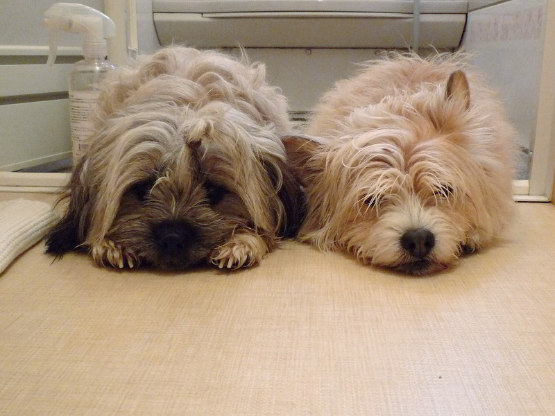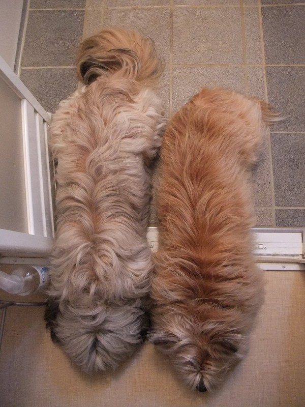 コーギー×シーズーmixのラッキーと、ラサ・アプソmix?のピッピ。