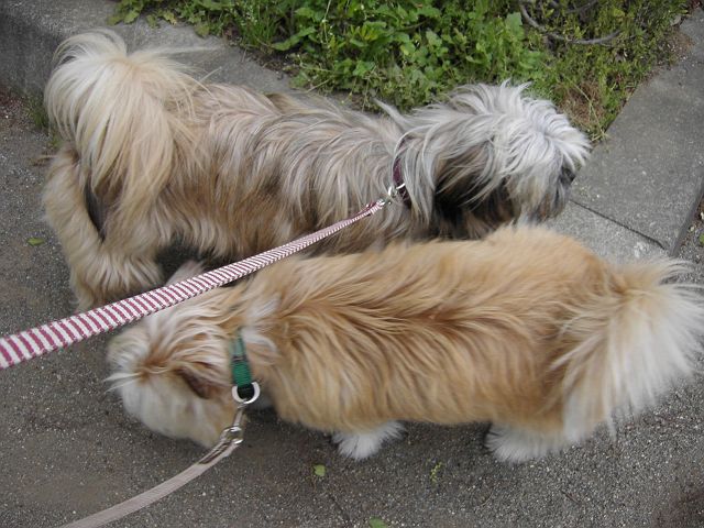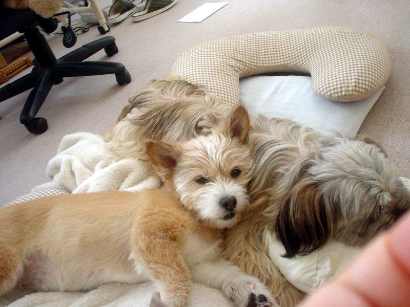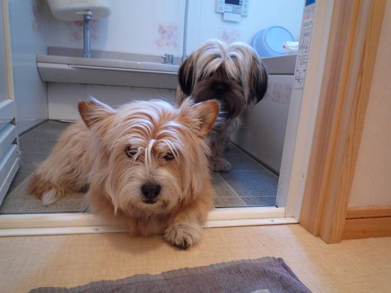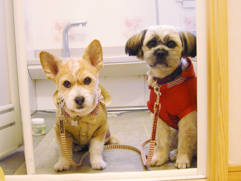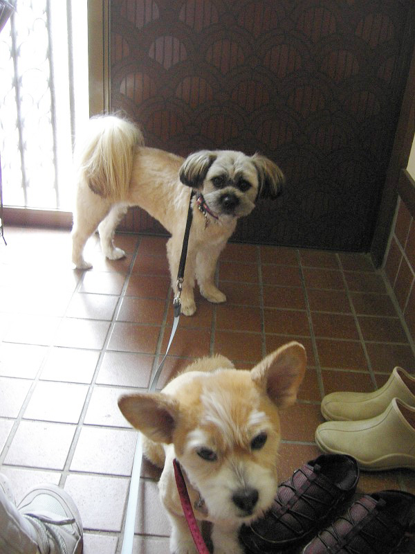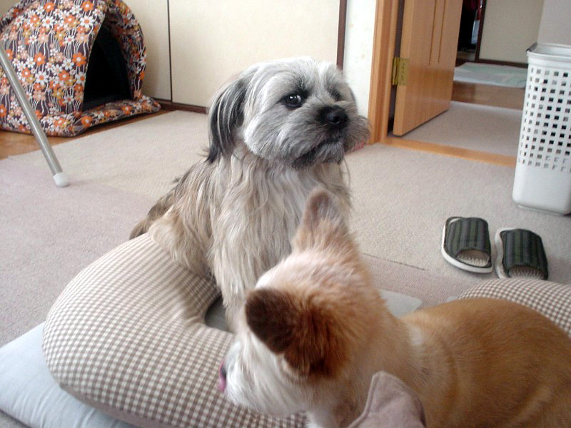 コーギー×シーズーmixのラッキーと、ラサ・アプソmix?のピッピ。