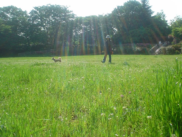 まばゆい光の中、いつもの素敵な散歩道ですね。。。