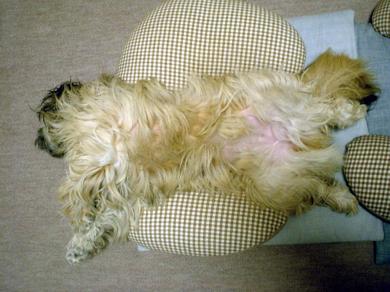 解かりにくいかもしれませんが、後ろ足を真っ直ぐ前に伸ばし、あごの下に・・・