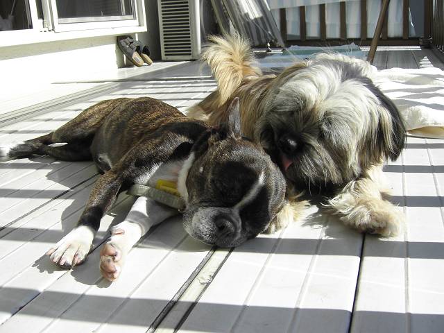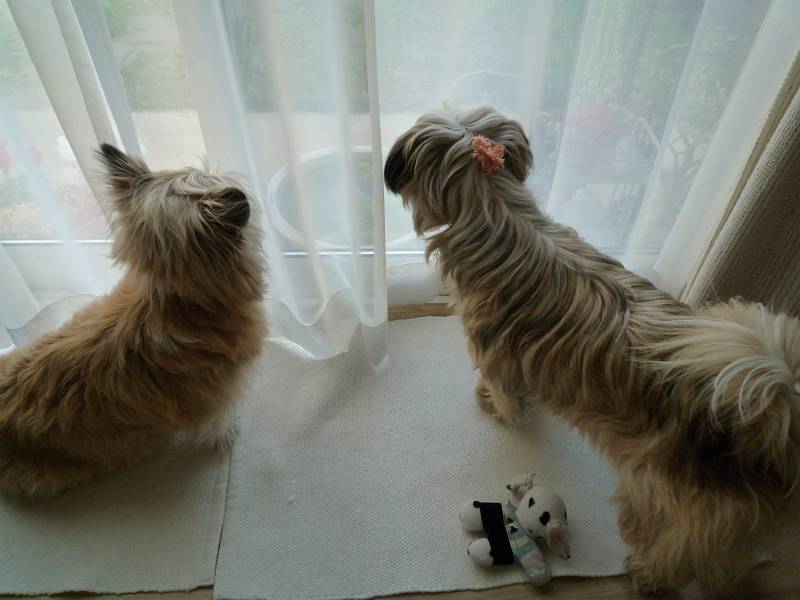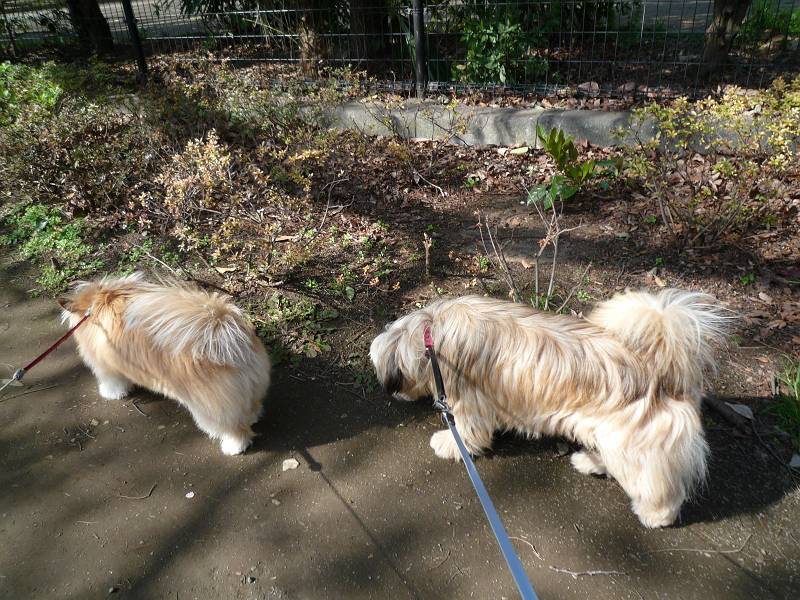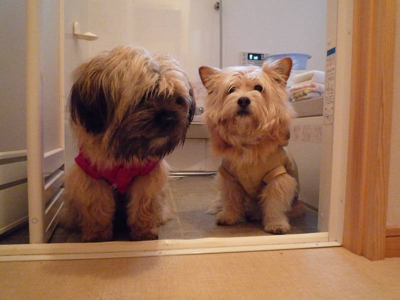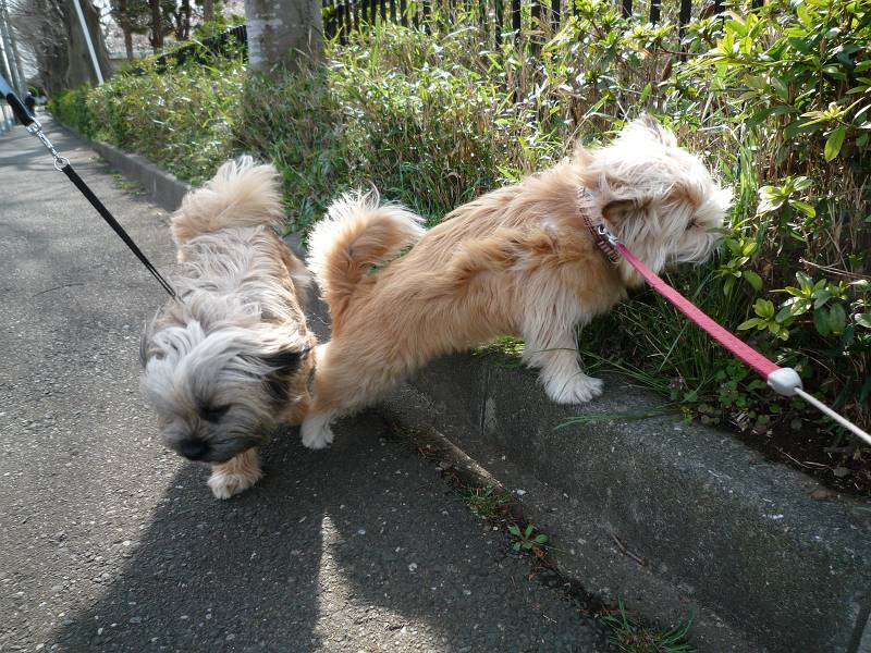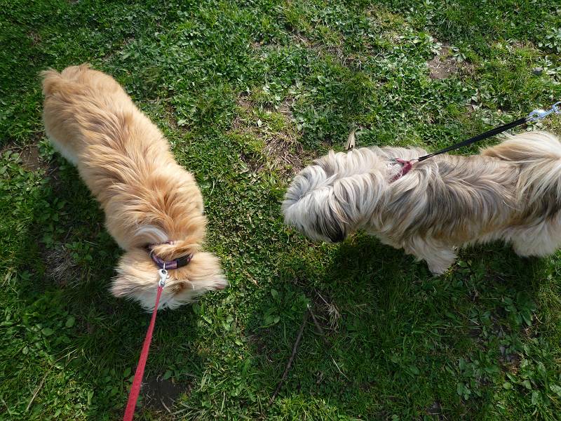 コーギー×シーズーmixのラッキーと、ラサ・アプソmix?のピッピ。