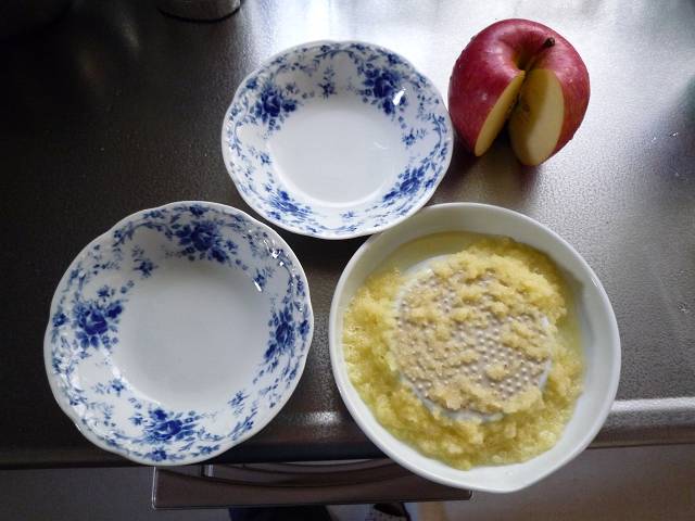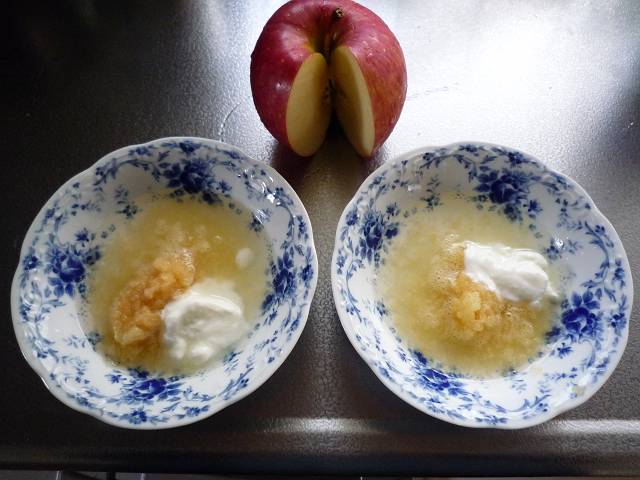 そして、午後はおやつに、りんごとヨーグルトのスープです。
