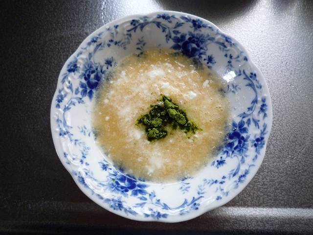スープをかけ、すり黒ゴマを少々をふって、出来上がり~
