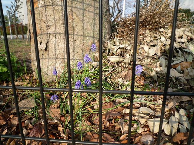 柵の向こうの、小さな妖精のような ムスカリ・・・・