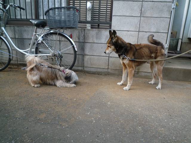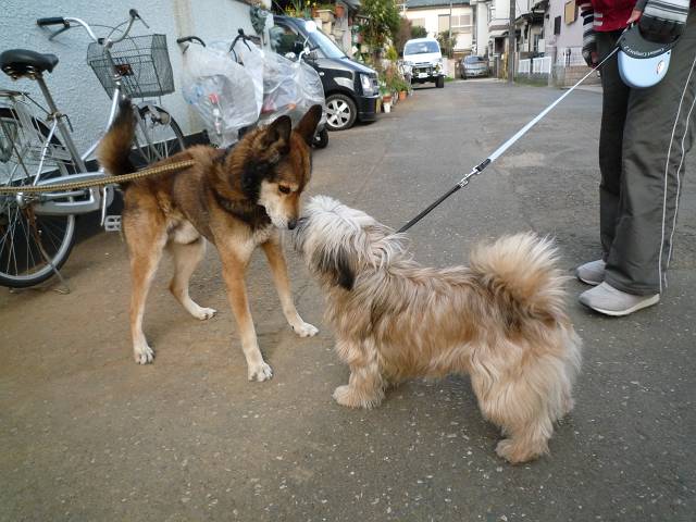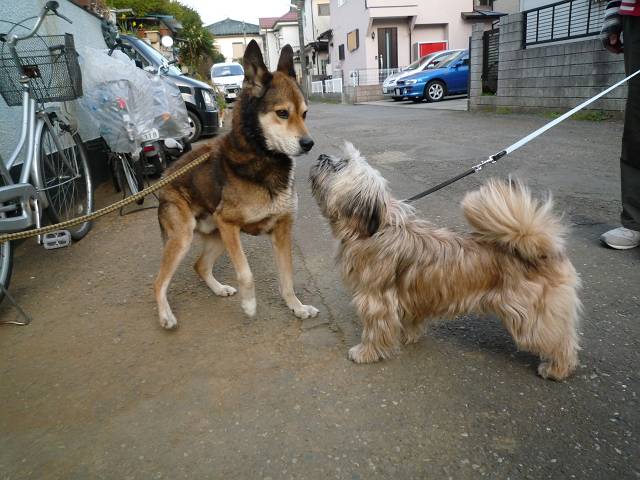 コーギー×シーズーmixのラッキーと、ラサ・アプソmix?のピッピ。