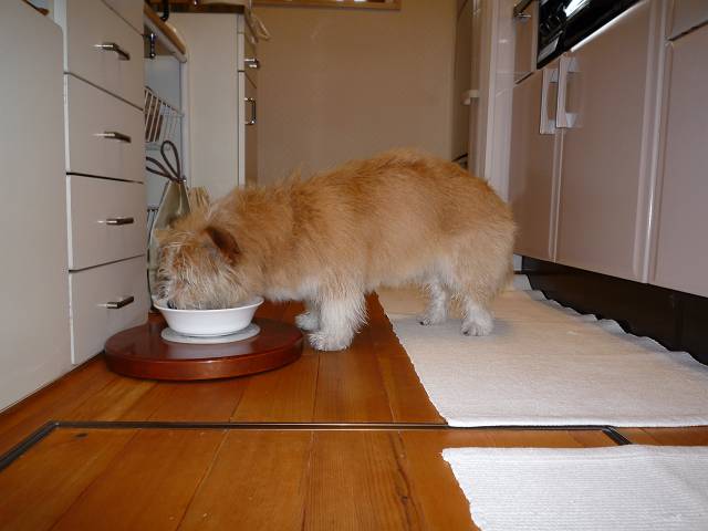器を動かさないよう、自分が回りながら、頭を使って上手に食べます・・・
