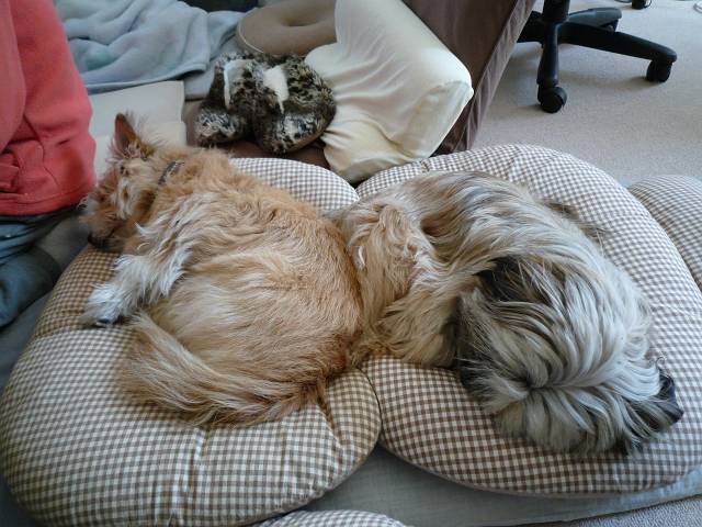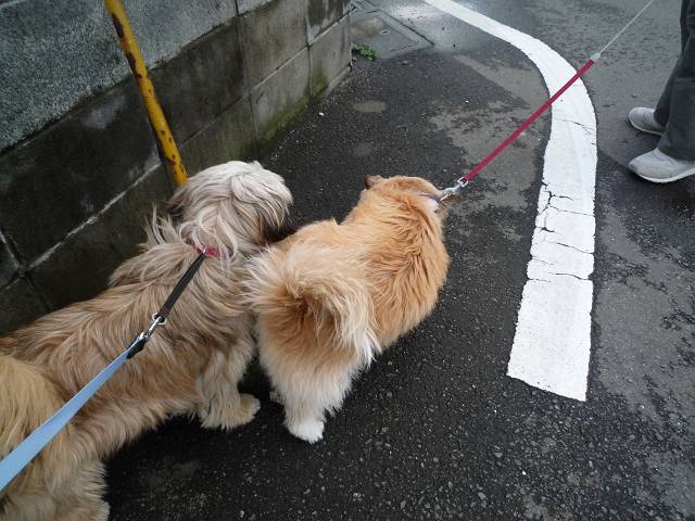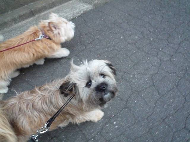 コーギー×シーズーmixのラッキーと、ラサ・アプソmix?のピッピ。