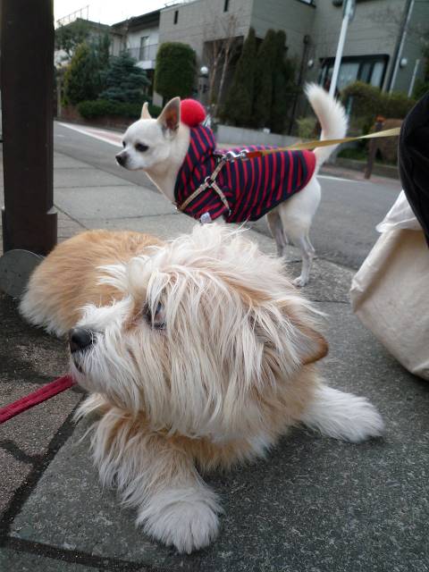 コーギー×シーズーmixのラッキーと、ラサ・アプソmix?のピッピ。