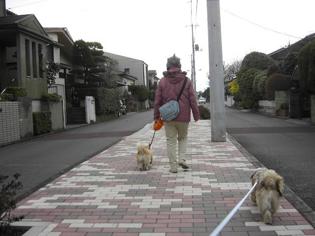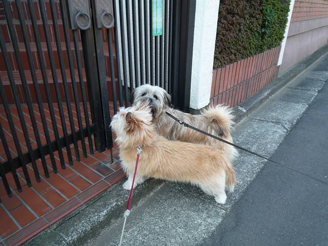 いつも優しくなでてくれる、ご夫婦のお宅の前で待つ2匹・・・