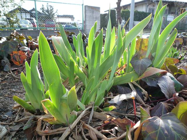 ジャーマンアイリスの若葉がまぶしい。