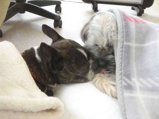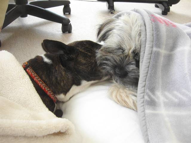 コーギー×シーズーmixのラッキーと、ラサ・アプソmix?のピッピ。