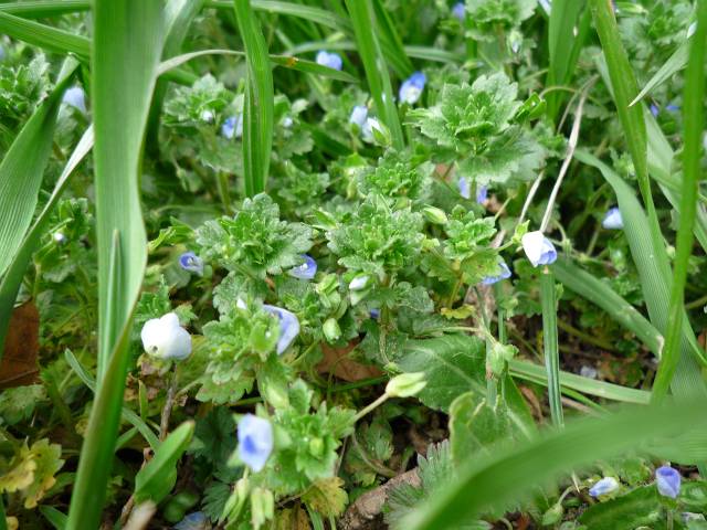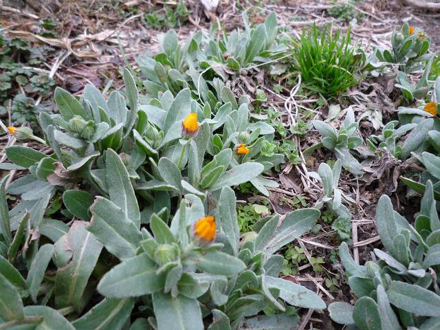 こぼれ種で芽吹いたキンセンカでしょうか・・とっても小さくて、かわいい・・・