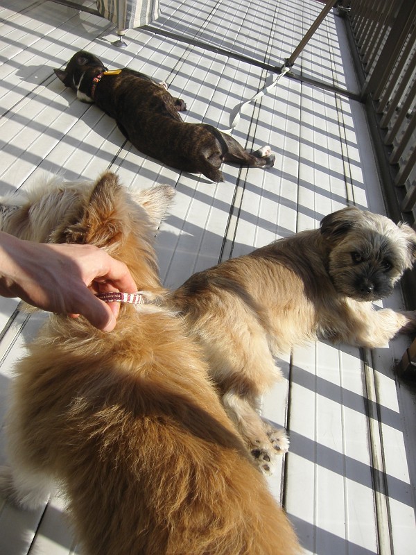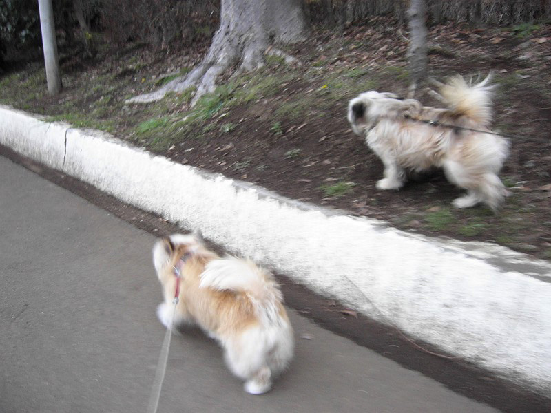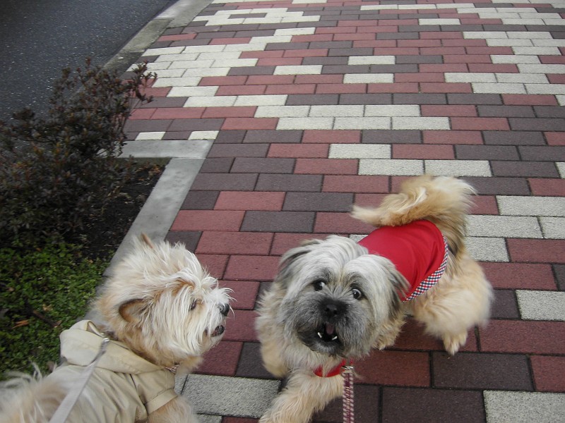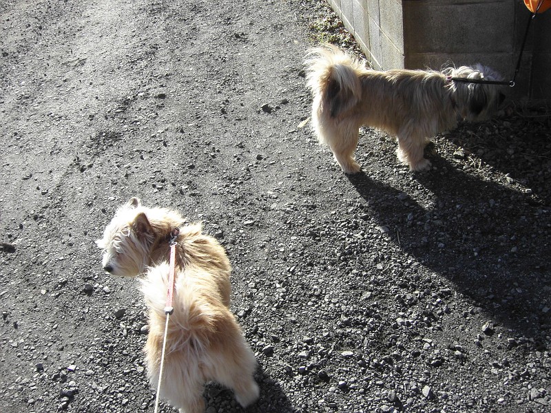 コーギー×シーズーmixのラッキーと、ラサ・アプソmix?のピッピ。