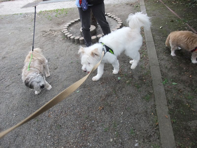そして、ラッキーは、空気を読まずに吠えてしまうところがあり、コロちゃんの気分を害して反撃にあったらいけないので、リードで、近くへ寄れないように繋いであります。