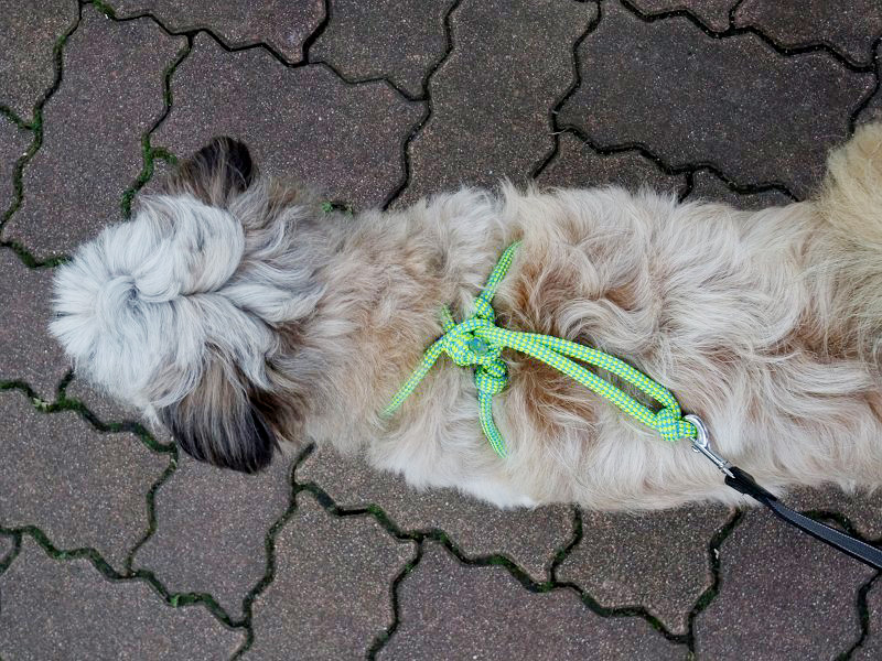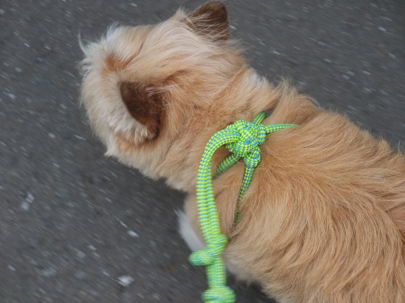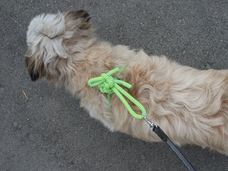 でも、リードと繋ぐ部分に、あまり必要性を感じない結び目があって、ちょうど、目にあたるような位置に来てしまう。
