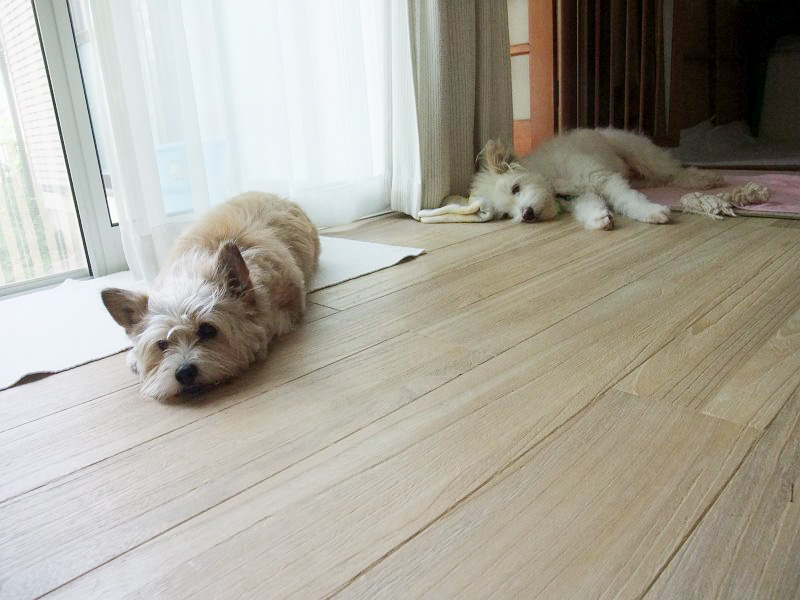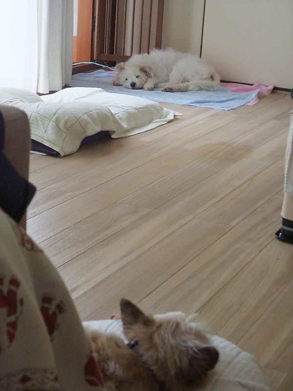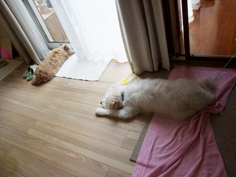 コロちゃん、外犬だったから、初めてのエアコンの夏。