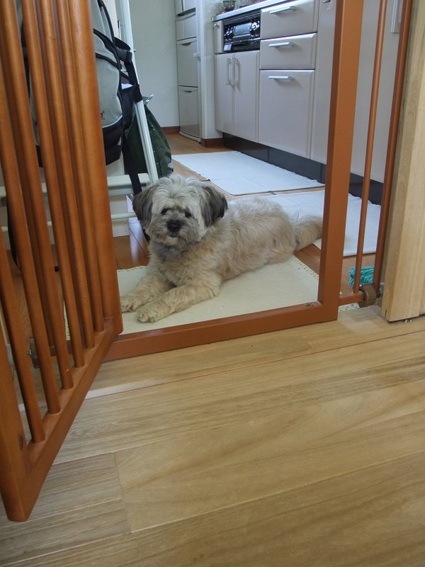 コロちゃんと、ラキピピは、少しずつ馴染ませてあげた方がいいので、コロちゃんの居場所は、リビングと、柵で区切られています。