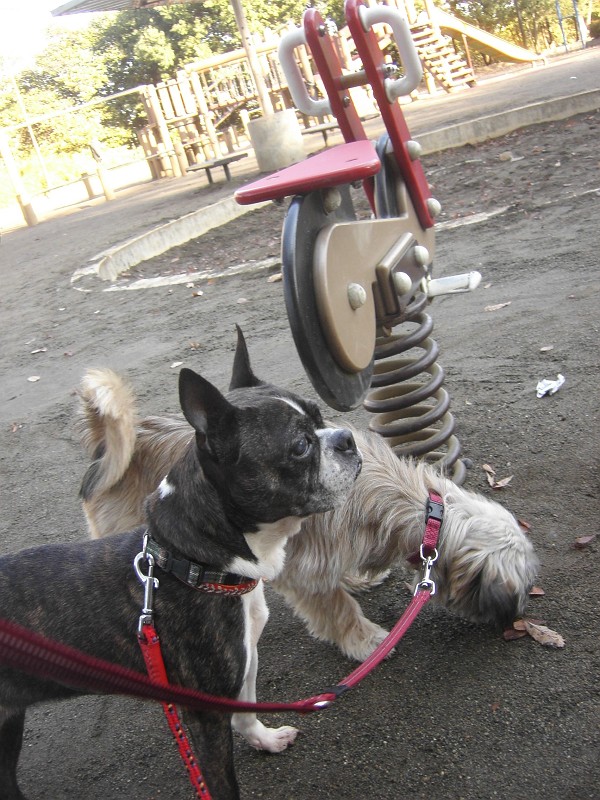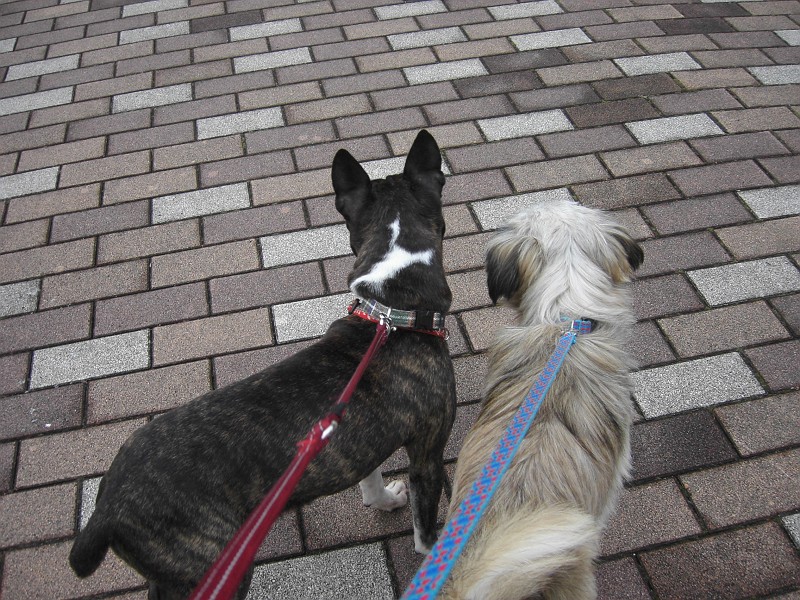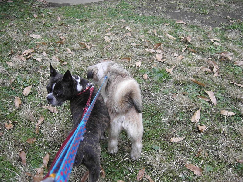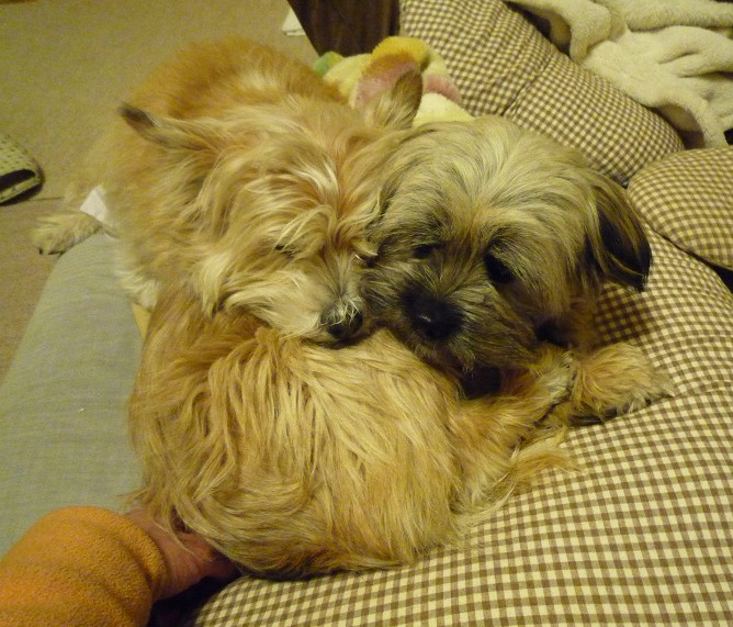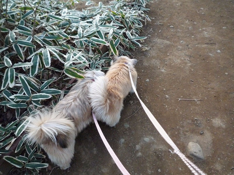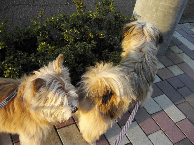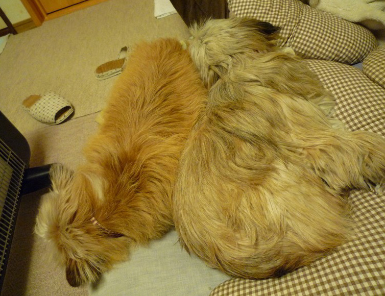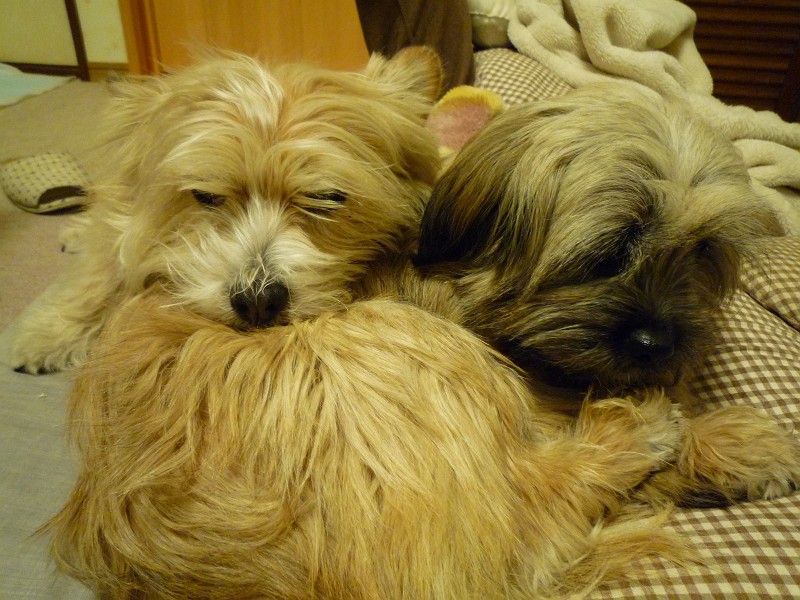 コーギー×シーズーmixのラッキーと、ラサ・アプソmix?のピッピ。