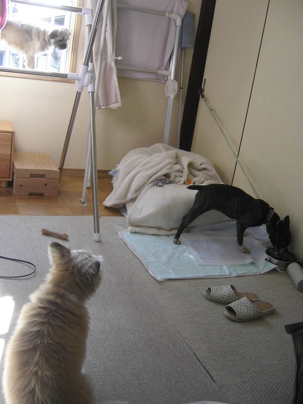 まりもが、水を飲もうとしてちょっと動くと、ラッキーは、吠えていました。