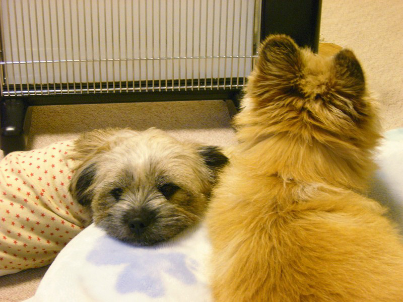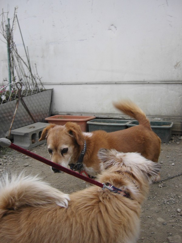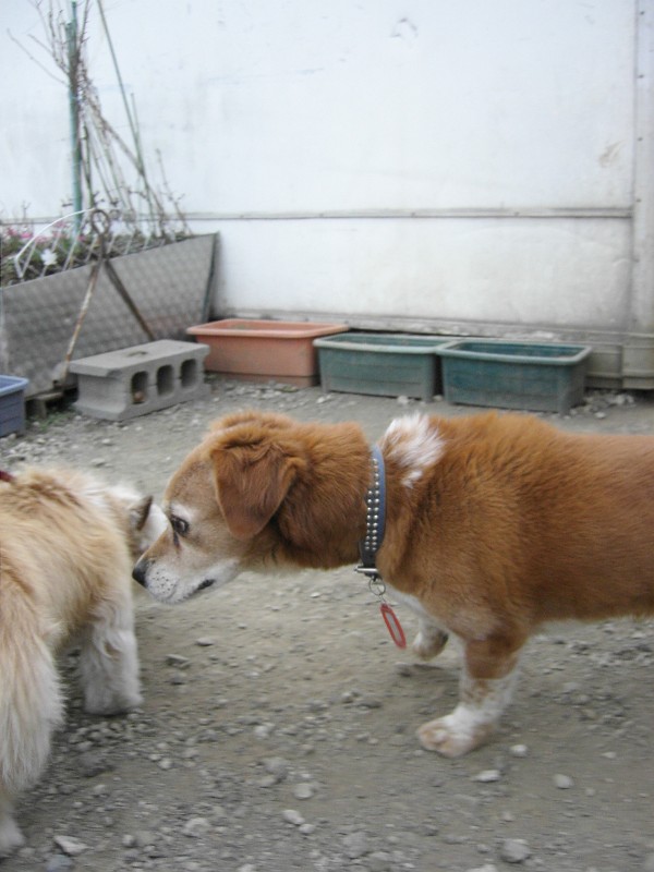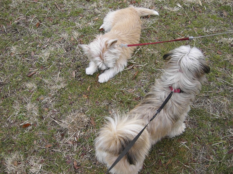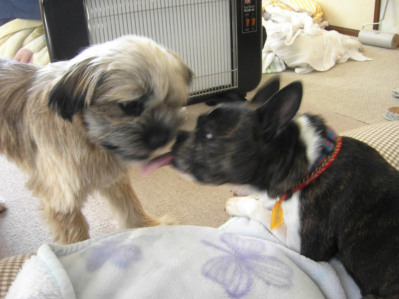 コーギー×シーズーmixのラッキーと、ラサ・アプソmix?のピッピ。