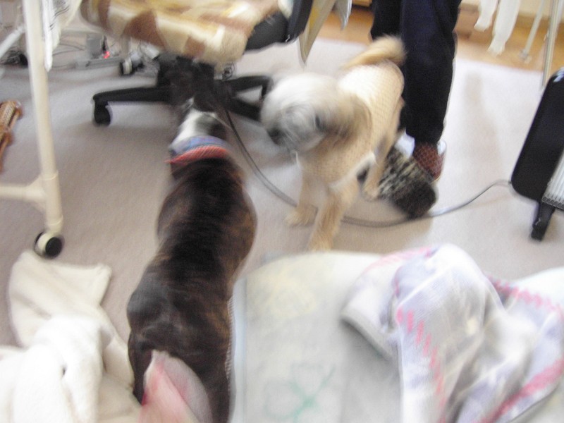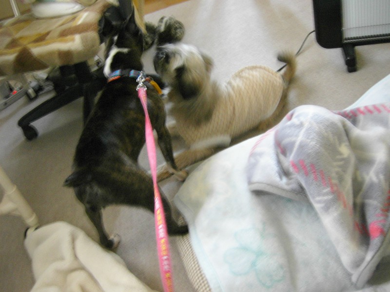 ブログでも他の犬へのアタックの件お書きになっていたので、他の犬とのあいさつの時は細心の注意をはらっております。ボストンテリアの顔めがけて噛み付こうとした事が一度ありました。(その時はすぐ引っ張って大丈夫でした)その他はきちんとあいさつ出来ています。これからも注意して見ていくつもりです。