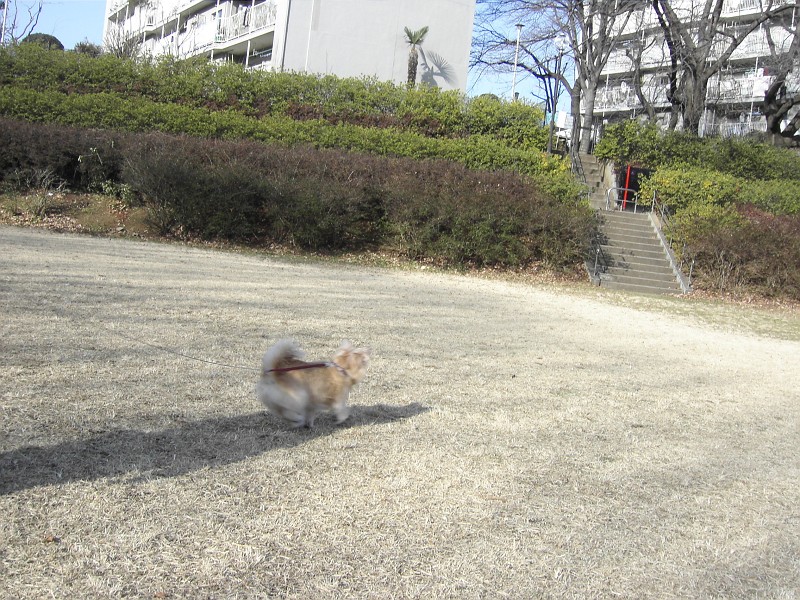 おうちでフリーにしてもらって、ウキウキとお二人のそばにくっついて歩いているまりも(フリーダ)の、うれしそうな姿が、目に浮かびます。